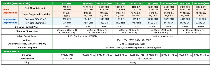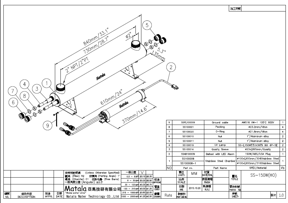 註一. 25W殺菌燈的出、入水口是1.5英吋