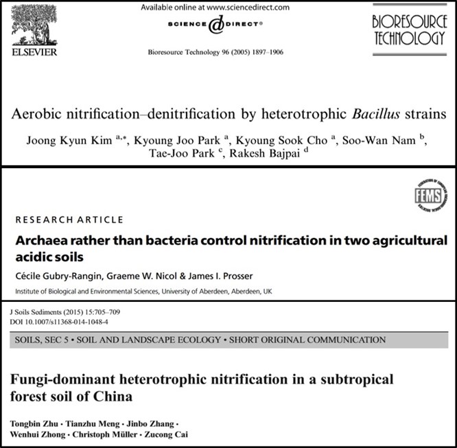 3. Hayatsu, M.; Tago, K.; Saito, M. (2008) Various players in the nitrogen cycle: Diversity and functions of the microorganisms involved in nitrification and denitrification, Soil Science and Plant Nutrition, 54:1, 33-45