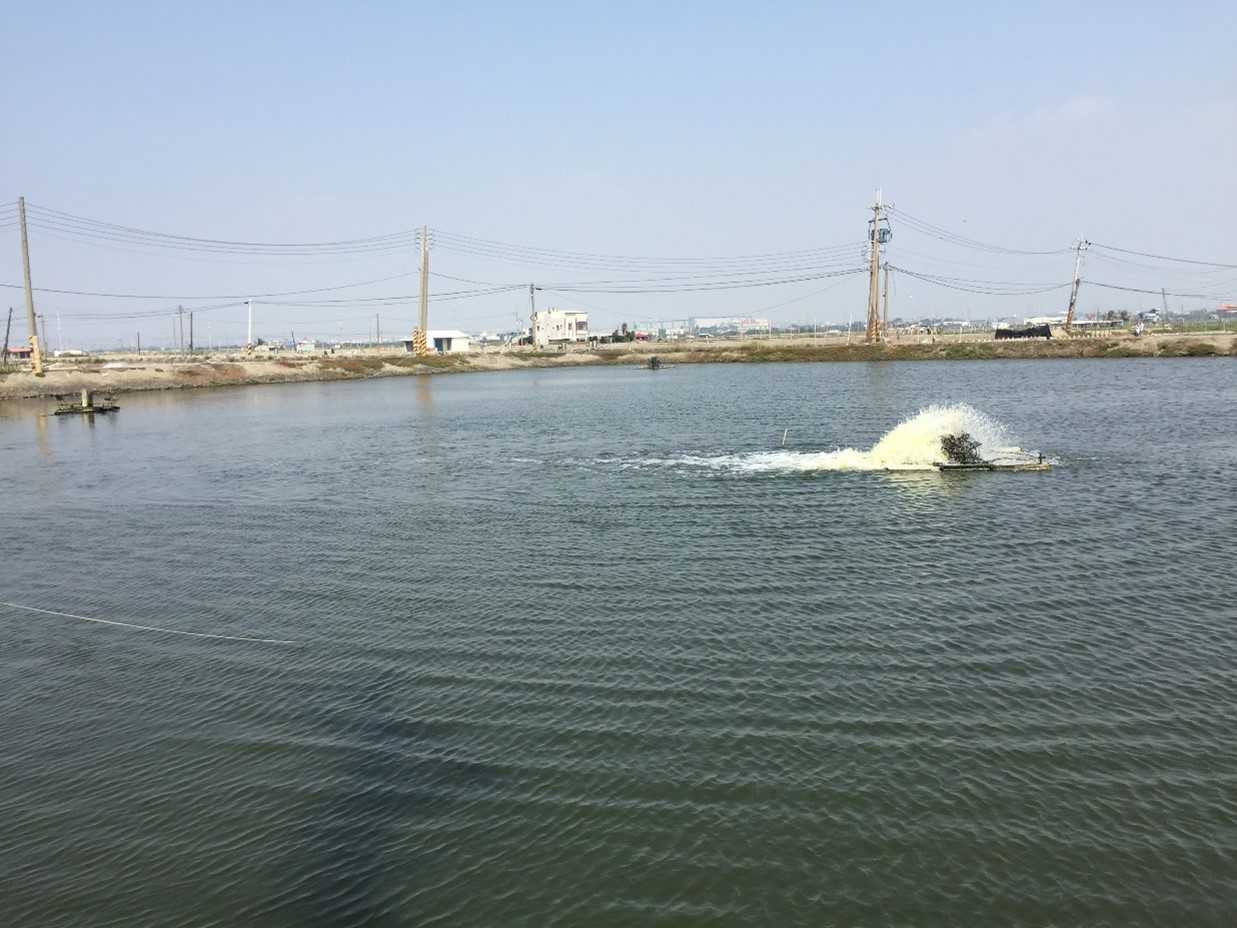 圖2. 高雄永安的白蝦及虱目魚於室外混養池