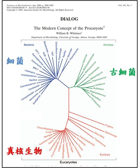 古細菌 (Archaea) 這個名詞聽起來似乎是來自古老的細菌分支,又帶著些許神秘感。然而,根據 16S rRNA 建立的三域系統 (Three-domain system) 可發現細菌、古細菌和真核生物可視為三條獨立演化出的分支 (見下圖)。雖然古細菌和細菌同為單細胞缺少細胞核 (統稱原核生物),然而在某些生理特徵和DNA序列上,古細菌更為接近真核生物。