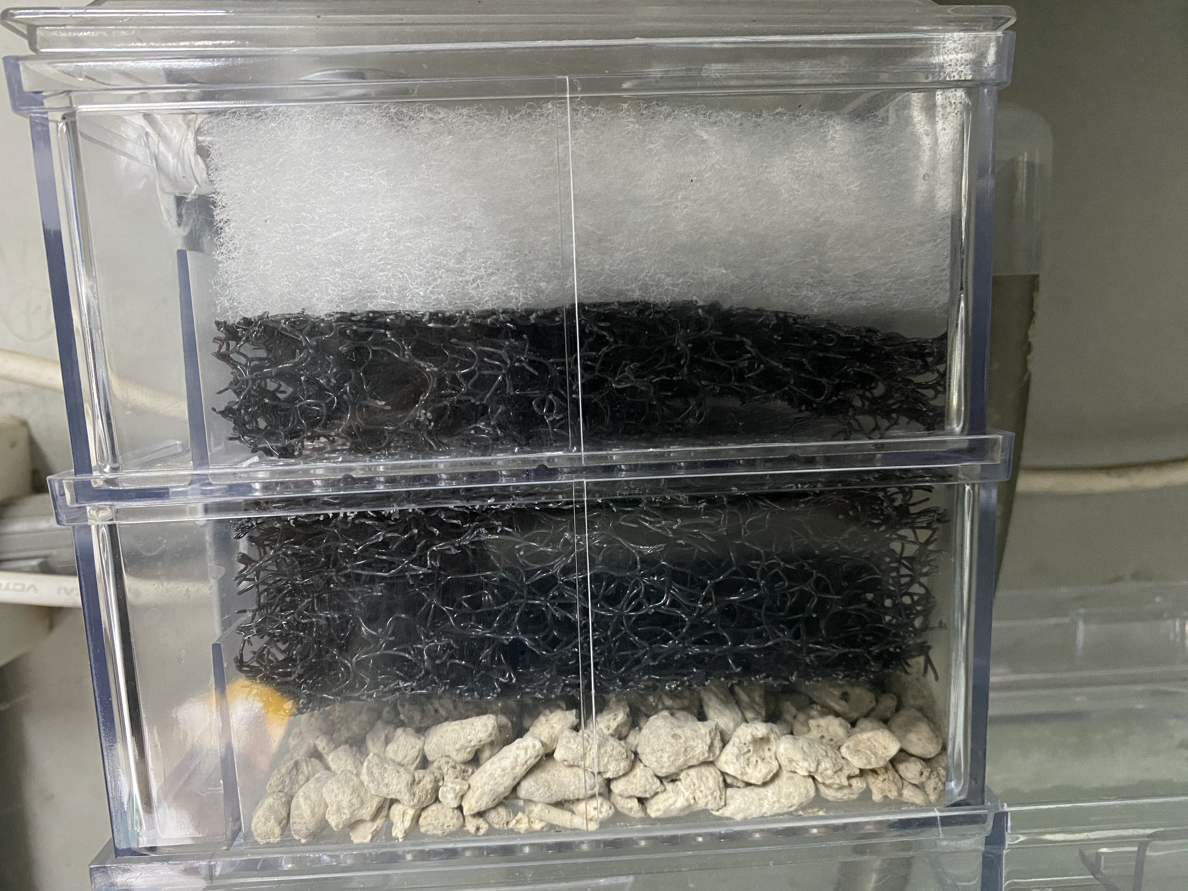 照片僅為示意,實際使用時建議每個種類的濾材分區使用,石質濾材與塑膠濾材有空間的話不要相疊
