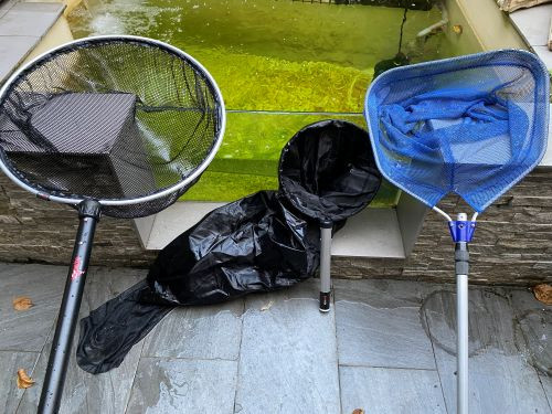 暫養池設置好後,接下來就是撈魚了,為了能在捕撈的過程中減少驚嚇及損傷,一般會準備的撈網有三種: