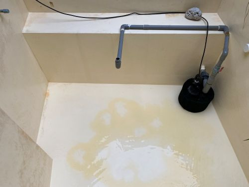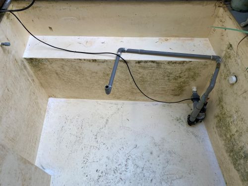 將魚移至暫養池後,就能開始請洗魚池了,先打開底部排汙口,若是biosteps10的話也可把過濾器排汙口打開,藉由沉馬將水抽出,在放水的過程,也可以順道使用高壓清洗機先清洗一遍,接著使用專用的水池吸塵器,將底部的積水全部吸除(或是使用低水位馬達,但需注意容易吸到雜質)