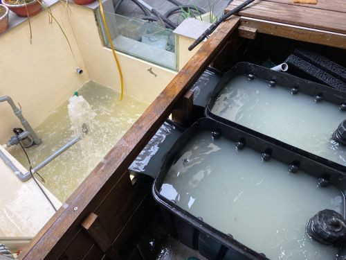 鯉科魚,特別是金魚跟錦鯉,可以飼養在戶外露天環境,但非原生種的觀賞魚,由於大多生活在熱帶地區,不見得能承受得住寒流時的低溫,另外,若是人造的景觀池、生態池,因為是在原本沒有蓄水的地方硬是挖地而建,本身並不自然,所以也需要人為加以干涉照顧,才能營造一個乾淨健康的魚池環境由於魚池的水體大,一般無法靠著換水來做平時的維護(引入活水的山澗魚池除外),因此必須要靠充足的硬體設備來支撐循環用水,水體量大的話,通常會額外設計過濾槽,水體小的就使用過濾器,若是5噸以下甚至是檢疫池,則可以使用biosteps10生物過濾器,不僅能過濾、殺菌/藻,還能充當排汙出口,裝設簡單能自行組裝,是最適合小池子使用的過濾器,搭配生態硝化菌使用,即能滿足平時維護所需
